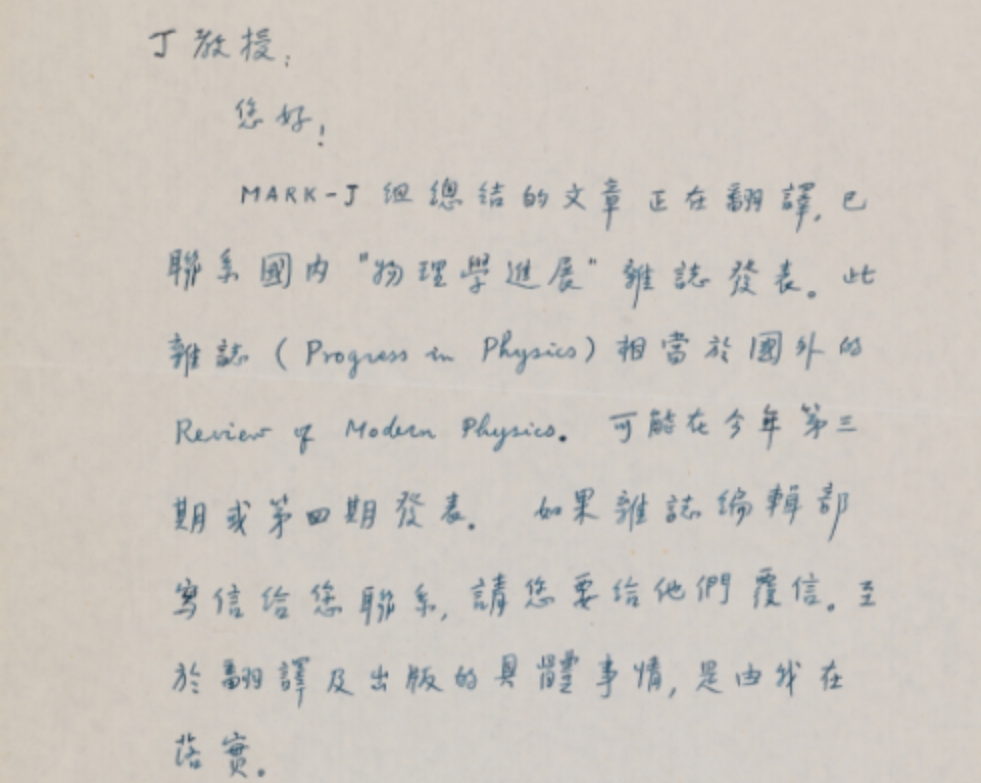 • 1984年唐孝威寫給丁教授的信
